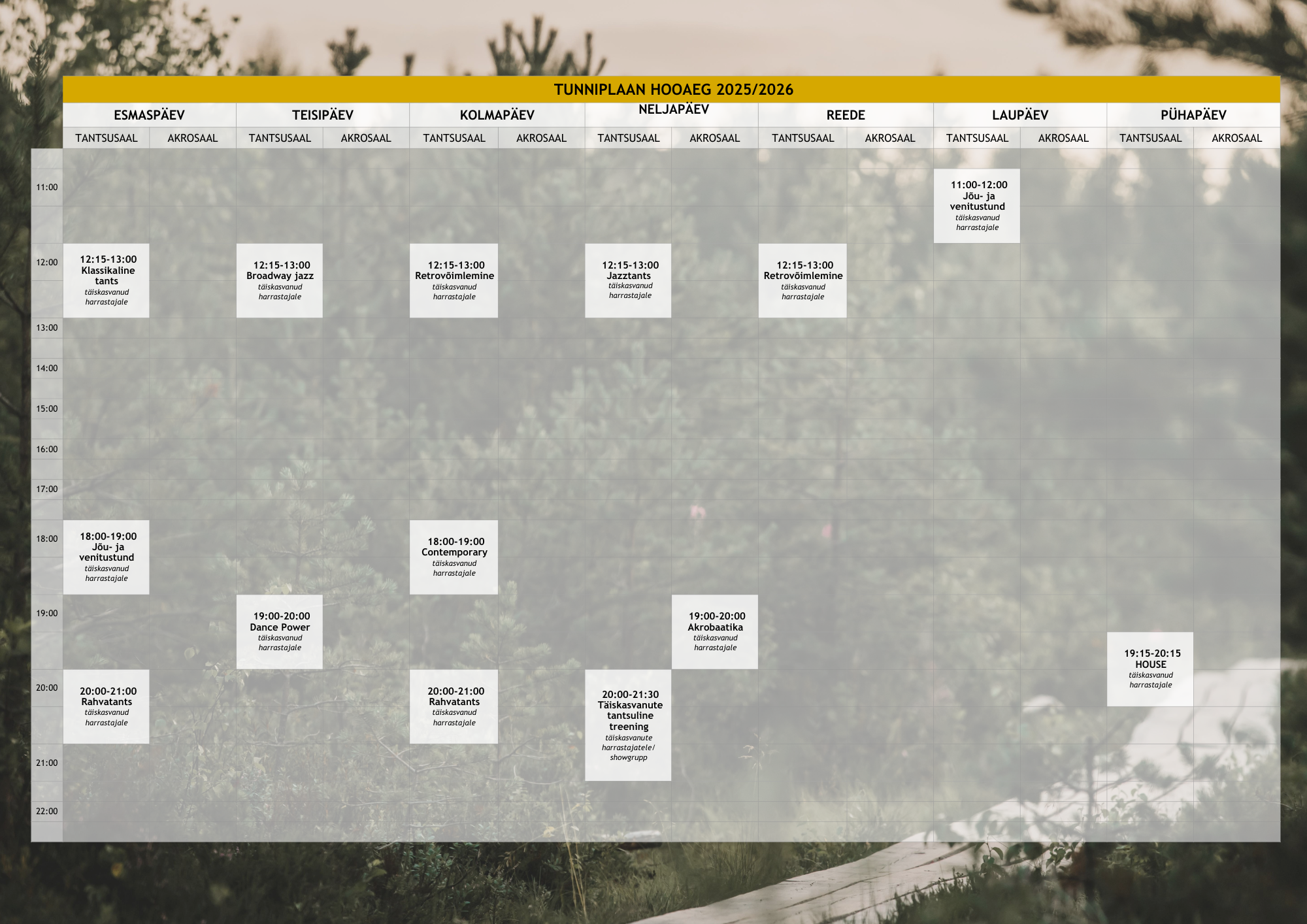 KOIT TANTSUKOOL tunniplaan ja aastaplaan on üleval kodulehel. Palun jälgige seal olevat infot.